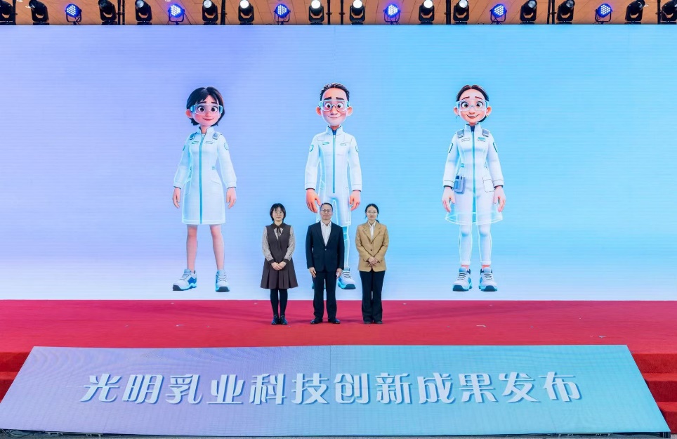 產(chǎn)品創(chuàng)新的背后,離不開光明乳業(yè)深厚的科研積淀。發(fā)布會(huì)現(xiàn)場(chǎng),光明乳業(yè)研究院的科研專家天團(tuán)攜自己的AI數(shù)字人亮相,通過一場(chǎng)跨越虛擬與現(xiàn)實(shí)的創(chuàng)新互動(dòng),逐一揭曉了光明乳業(yè)在自有知識(shí)產(chǎn)權(quán)菌株轉(zhuǎn)化應(yīng)用、高端發(fā)酵乳、功能性牛乳三大領(lǐng)域的創(chuàng)新成果。