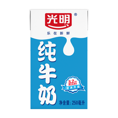 光明純牛奶,經(jīng)國際先進(jìn)超高溫瞬間滅菌工藝,3.2g/100mL原生乳蛋白,營養(yǎng)更升級!