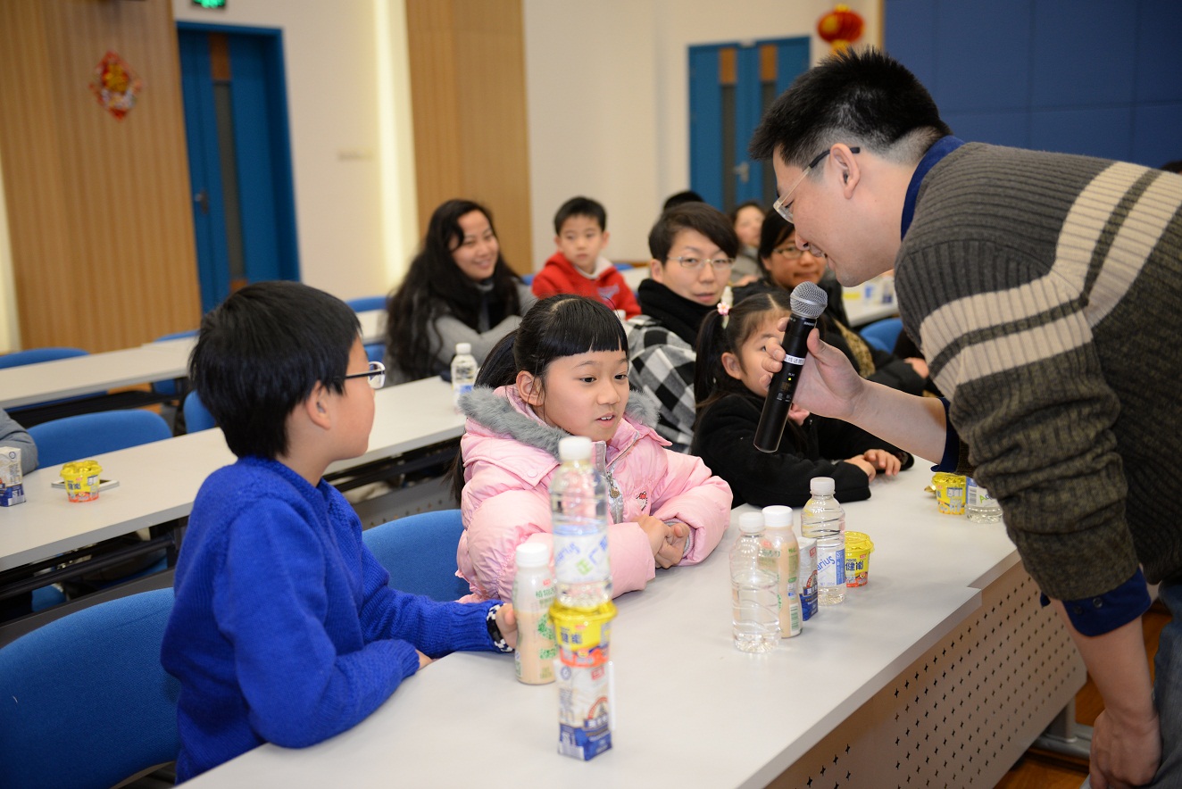 2月3日上午9點,活動第一天,18個參與活動的職工家庭在吳中路光明乳業(yè)總部集合,整裝待發(fā)。約十點鐘左右到達華東中心工廠。進廠后車子先繞廠一圈,由工作人員向小朋友們介紹工廠環(huán)境,在大致了解工廠情況之后小朋友和家長們下車到大廳集合并進行合影留念。
