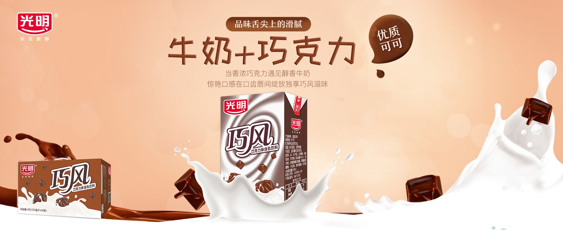 光明巧克努力巧克力牛奶,口感香濃、滴滴醇厚,隨時(shí)隨地滿足你對(duì)美味的追求。