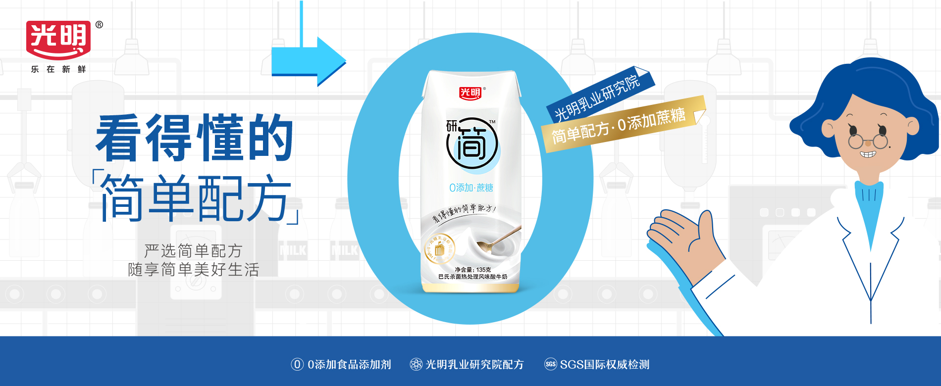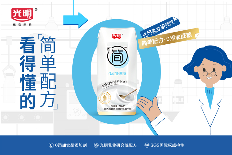 光明乳業(yè)研究院創(chuàng)新配方,簡單如此,何必復(fù)雜!看得懂的簡單配方0添加蔗糖,身體少負(fù)擔(dān)。