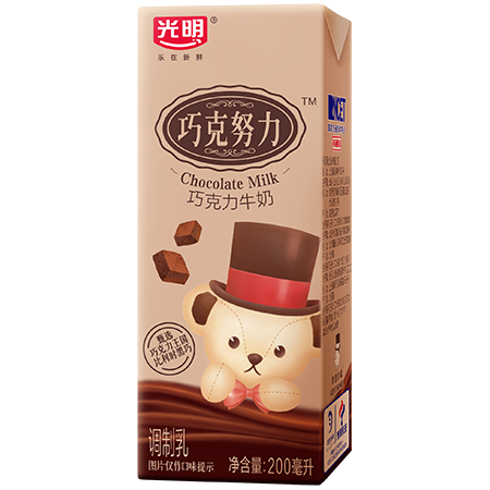 光明巧克努力200ml巧克力牛奶,由比利時(shí)進(jìn)口黑巧克力、“象牙海岸”科特迪瓦的可可粉與優(yōu)質(zhì)奶源完美搭配,口感香濃、滴滴醇厚,隨時(shí)隨地滿足你對(duì)美味的追求